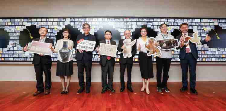 彩运网携手创利空间为故宫建置的智慧文物互动导览墙及轮播墙,,,,今日正式启用。。(左四:彩运网新事业暨投资管理总部副总经理杨本豫、、右四:故宫博物院院长吴密察、、右三:太极影音董事长黄宝云)