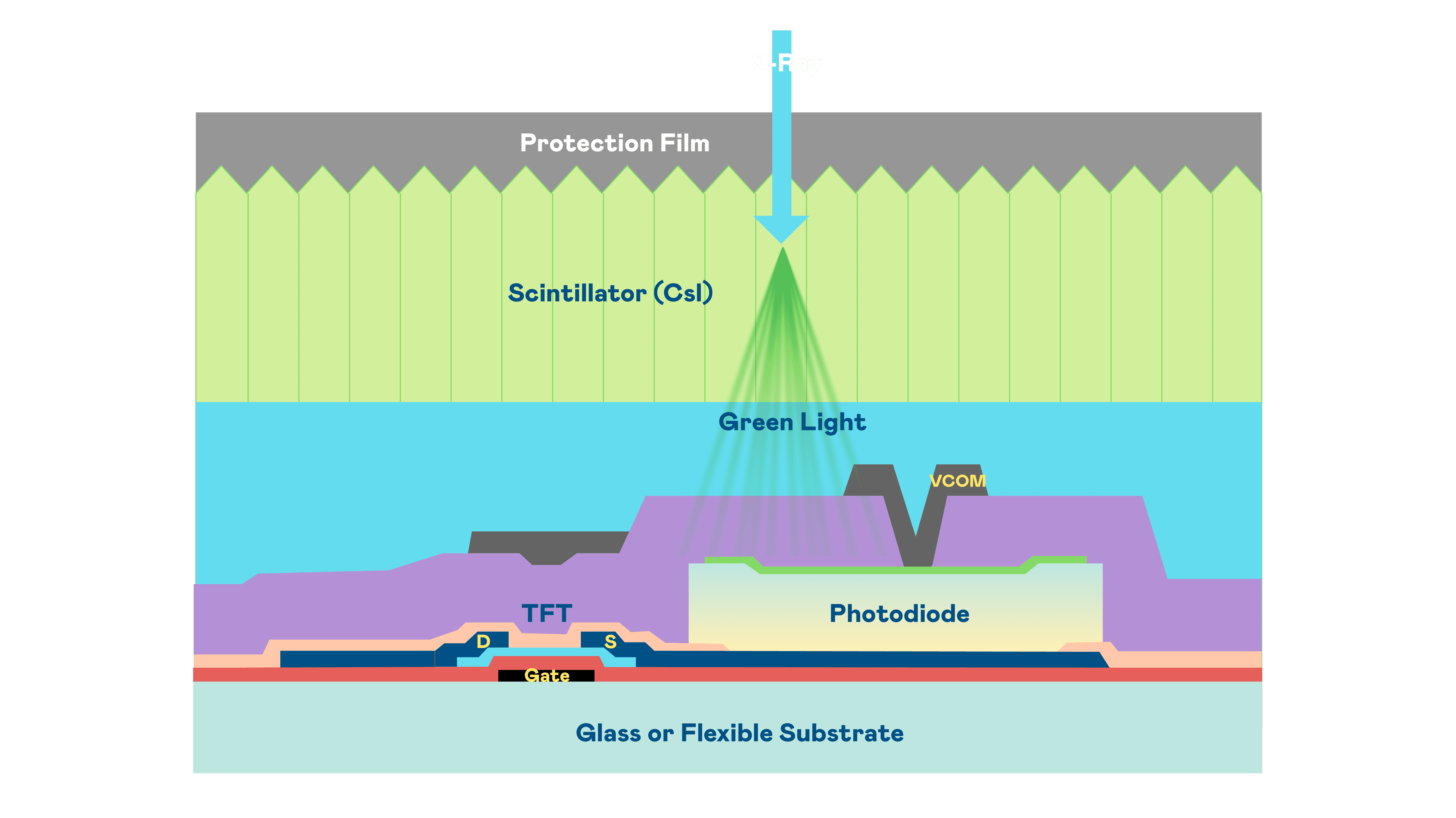 彩运网的X光影像感测阵列使用薄膜电晶体 (TFT) 作为每个像素的读取开关,,搭配光电二极体(Photodiode)的光电转换元件,,,用以感测X光影像讯号。。。。